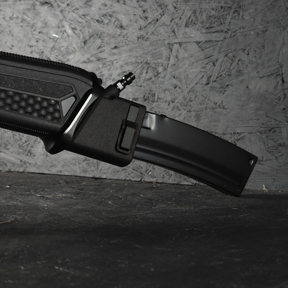 Up your game with the new GLK/AAP-01 to MP5 HPA Adapter. This adapter allows you to run your gun on HPA, while using CYMA MP5 midcap magazines, which offer increased capacity and lower cost over gas magazines. You won't suffer from gas troubles, and will be able to full auto all day long!